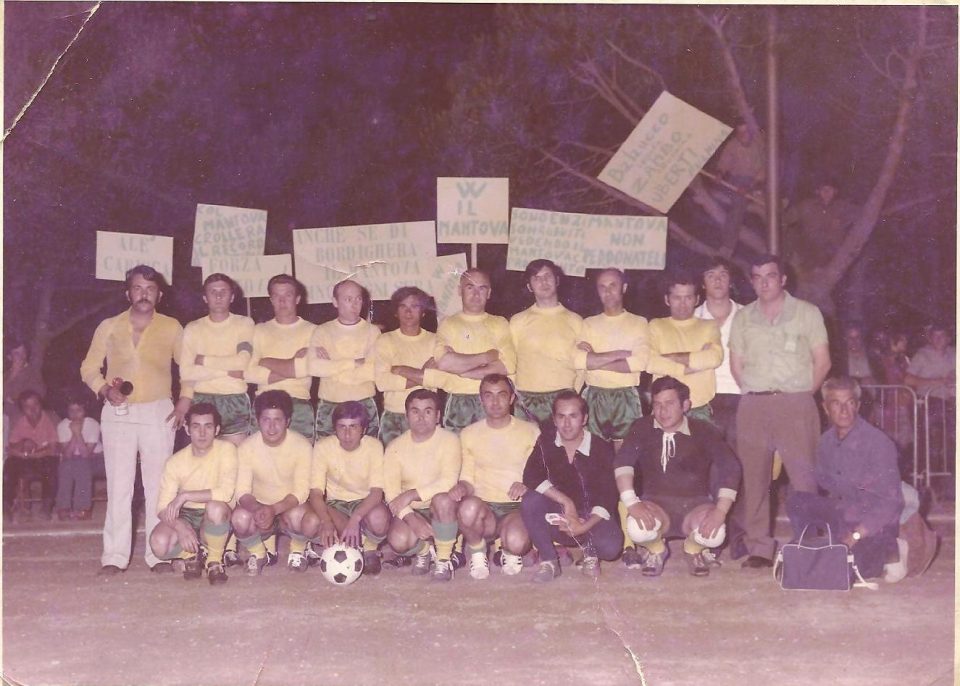 Ho fatto questa lunga premessa per poter sottolineare come mi sia sempre rimasta impressa nella memoria l’edizione del 1964 (nelle discussioni anche con chi vi aveva attivamente partecipato nessuno mi ha mai contestato tale data!) per complessi, rigorosamente esclusi a tesserati, di bar e ristoranti, avvenuta sul campo del Capo di Bordighera (IM), al quale ho già fatto cenno, edizione cui si riferisce per la compagine in cui militò nell’occasione (e per almeno un’altra successiva volta) lo zio materno la soprastante fotografia.