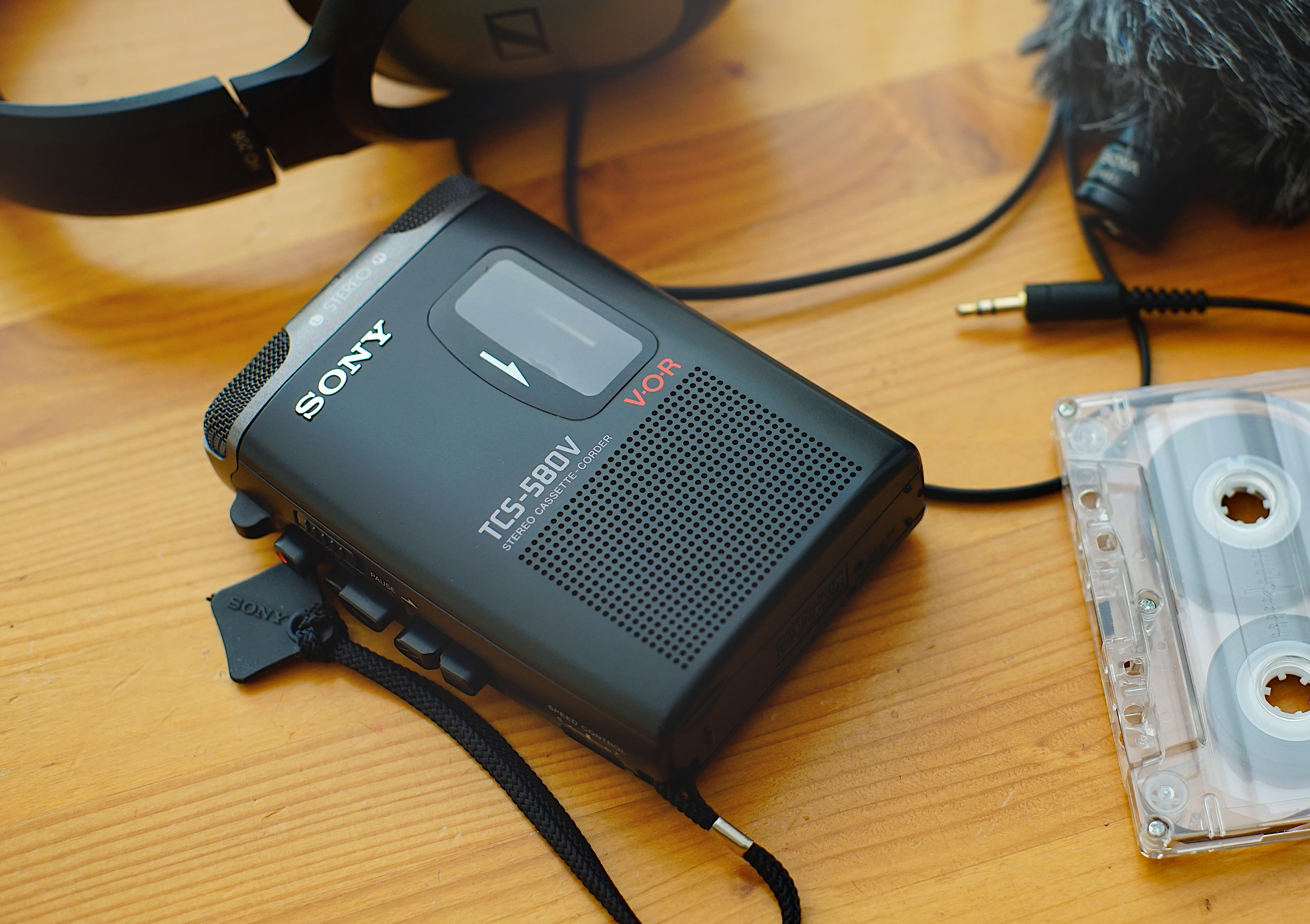 El Sony TCS-580V, una joya encontrada por apenas 15€ y funcionando de maravilla. La estupenda calidad de grabación en esta grabadora combinada con el micrófono Boya y monitorizado con los auriculares Sennheiser, se consiguen sonidos con una calidad excepcional para grabar en cinta de cassette. Con muy bajo ruido de fondo y utilizando cintas de chinas malas de 1€.